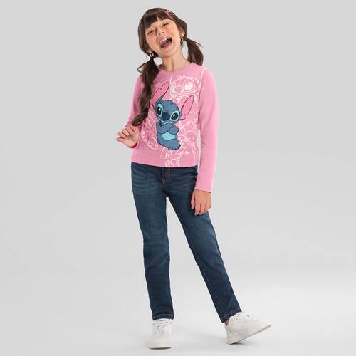 Deixe a imaginação da sua pequena voar para fora deste planeta com a blusa infantil para meninas do Stitch da Brandili! Confeccionada em malha macia com manga longa e gola redonda, ela oferece o máximo de conforto para que sua pequena possa viver suas próprias aventuras alienígenas. A estampa colorida do Stitch, acompanhada de escritas e detalhes em glitter, traz um brilho extra, deixando a peça ainda mais encantadora e cheia de personalidade. Com sua energia única, vai fazer com que sua pequena se destaque com muito estilo, perfeita para momentos de diversão. Essa blusa é ideal para combinar com jeans, saias ou leggings, criando looks que são um verdadeiro sucesso. Aposte nessa peça para o guarda-roupa de sua pequena.
