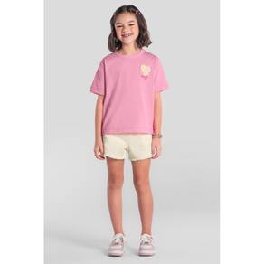Essa blusa infantil para menina é confeccionada em meia malha macia e traz estampa de ursinho Sweet Goods frontal e nas costas, garantindo um visual divertido e atual. Com modelagem oversized, gola redonda e mangas curtas, é a escolha perfeita para produções casuais com um toque de tendência. Versátil e prática, combina facilmente com diferentes peças do guarda