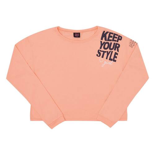 Neste inverno o conforto e estilo não pode faltar para sua princesa, por isso a Pulla Bulla trouxe essa blusinha super estilosa, confeccionada em meia malha na cor laranja lumi com estampa e detalhe na manda esquerda, proporcionando looks espetaculares para sua garota aproveitar em qualquer ocasião.