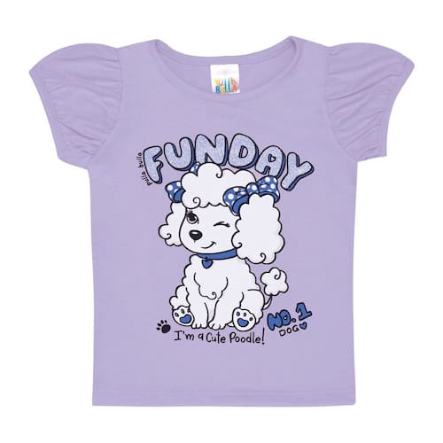 Para esse Verão a Pulla Bulla veio preparada, trazendo conforto, leveza e estilo tudo em uma linda Blusinha na cor Lilás, confeccionada em Meia malha com uma estampa super fofo de poodle com detalhes em glitter. Tudo para a sua princesinha se divertir nos dias de verão.