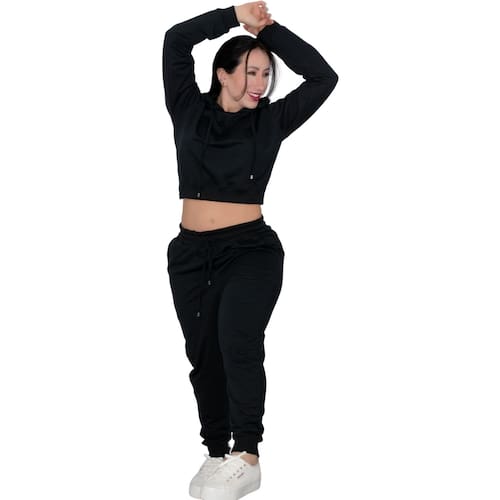 Blusa mais Calça Moleton Conjunto Com Capuz Meia Estação - Preto - P