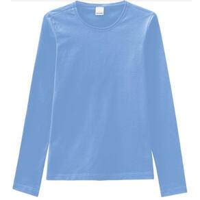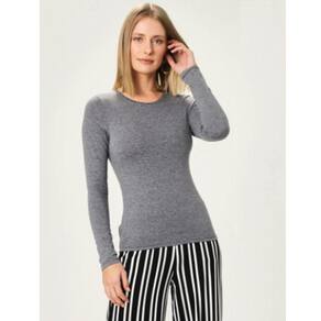 Blusa confeccionada em cotton light, um tecido de toque macio e confortável. Modelagem com caimento justo no corpo. Modelo possui mangas longas e decote redondo.