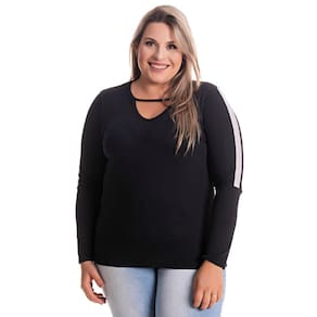 Blusa desenvolvida em viscose, leve, toque macio, possui tira em recorte contranstante na manga detalhe que é a tedência do momento, junto com o vazado na frente logo abaixo da gola que unidos dão um charme especial a peça. Use-a mais soltinha ou ajustada a silueta, sentindo-se de qualquer uma das formas super confortável! Marca usa a denominação de P ao GG para os itens que são plus!