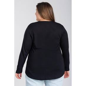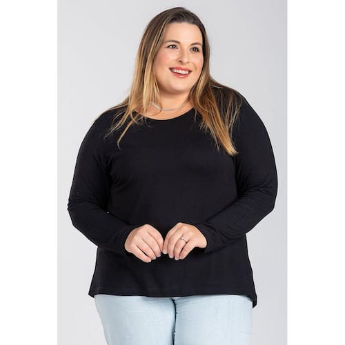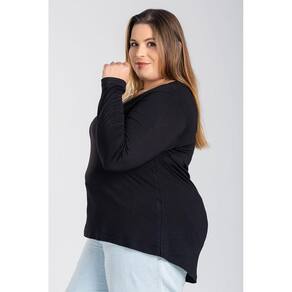 Blusa Manga Longa Mullet Feminina Plus Size em Malha de Viscose com Elastano - Serena - Preto - G2