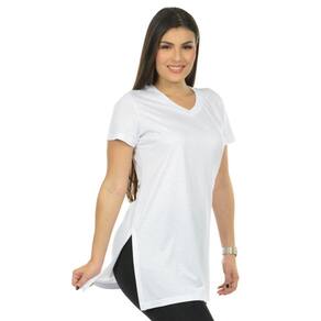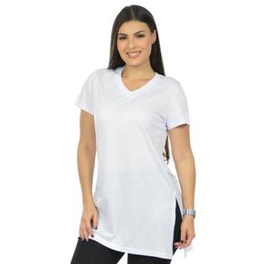 Fique dentro da tendência com esta blusa alongada, confeccionada em malha mista de poliéster e viscose, uma malha leve. modelagem alongada e soltinha com detalhe de fenda nas laterais e mangas curtas. ideal para um look mais moderninho e elegante.