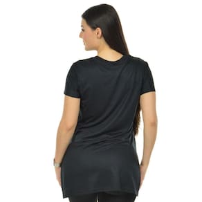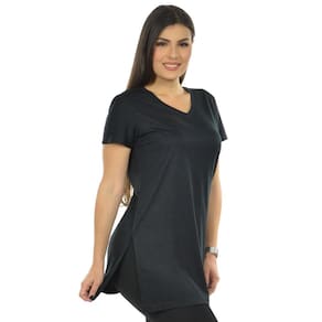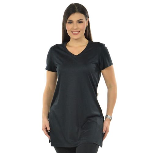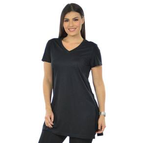 Fique dentro da tendência com esta blusa alongada, confeccionada em malha mista de poliéster e viscose, uma malha leve. modelagem alongada e soltinha com detalhe de fenda nas laterais e mangas curtas. ideal para um look mais moderninho e elegante.