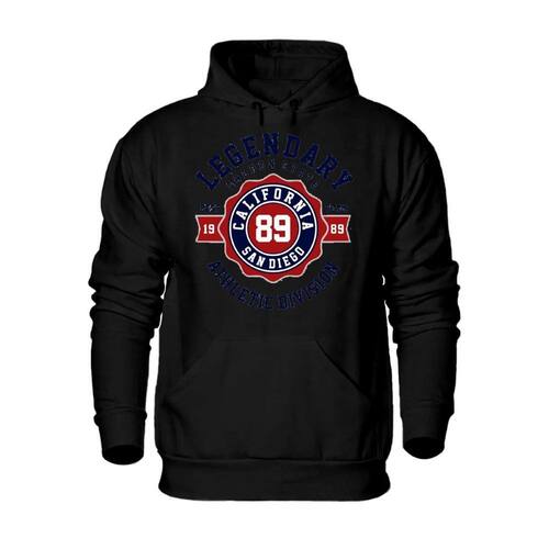Blusa Moletom Canguru Casaco de Frio Estampado Athletic Division 50% Algodão 50% Poliéster - Preto - G
