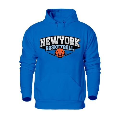 Blusa Moletom Canguru Com Capuz Ajustavel Estampa New York Basketball Estiloso Academia Dia a Dia - Azul Royal - G