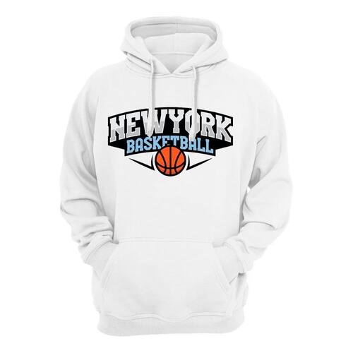 Blusa Moletom Canguru Com Capuz Ajustavel Estampa New York Basketball Estiloso Academia Dia a Dia - Branco - GG