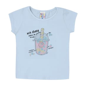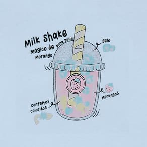 Toda estilosinha e pronta para ir tomar um milk shake com a mamãe! Confeccionada em tecido meia malha na cor nuvem, a blusinha possuí estampa de milk shake com escrita "Milk shake mágico de morango". A peça conta com gola mais arredondada e manguinhas curtas, tudo para sua pequena sentir-se confortável nos dias de calor.