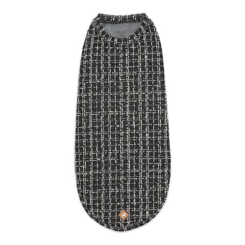 Blusa Ornela Pet - Collezione Tornare Com um ar nostálgico e sofisticado, a Blusa Ornela Pet é perfeita para cães que têm estilo próprio. Feita em malha jacquard texturizada, traz um elegante motivo quadriculado retrô em fios brancos sobre fundo preto - uma referência sutil aos visuais icônicos dos anos 70.