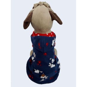 Material: produzido em soft felpado 100 % poliester; Fabricação própria; Confeccionado em soft felpado na parte interna com gola e punho em algodão; Abertura na parte de baixo para facilitar as necessidades de seu pet; Não possuí botões ou zíper.