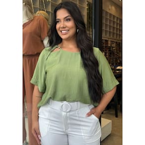 Blusa Plus Size Manga Curta com Abertura nos Ombros e Aviamento – Conforto e Estilo