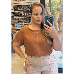 Garanta já a sua Blusa Plus Size com Pespontos e Martingale na Manga