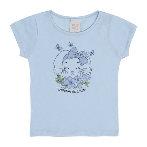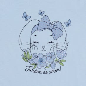 Blusinha ideal para os passeios mais divertidos da estação! Confeccionada em tecido meia malha a blusinha possuí estampa frontal de coelhinha na cor hortênsia com flores e escrita "Jardim do amor", ótimo para combinar com short, saia ou legging e aproveitar o dia com a priminha.