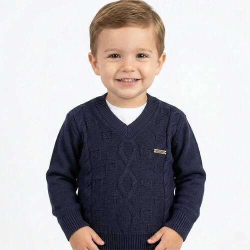 Blusa Quadriculada Tricô Kids Losangos feito em tecido algodão e acrílico, gola em V, Tricô Kids em metal no peito, estampa quadriculada, manga longa e etiquetas personalizadas.