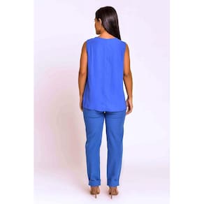 Blusa Regata em Viscose, possui decote em V com detalhe em corrente e pequenas aberturas dos lados A Blusa regata em viscose é uma peça que combina com tudo, ótimo para usar em dias quentes, confortável, super versátil. Pode ser usada com jaquetas e carrega leveza. Código do Produto: 222234600205