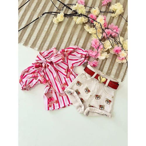 Blusa infantil feminino social manga princesa, gola alta com amarração estampa realista ursinho deixando o look perfeito, super divertido, uma fofura, sua princesa vai ficar apaixonada.