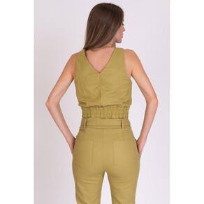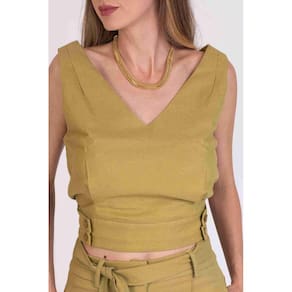 Blusa Social Safari, possui decote em V na frente e atrás, alça larga, pregas na frente e na região do ombro, detalhe de dois botões na cintura, elástico na cintura atrás. A blusa social feminina de alfaiataria é uma peça-chave do guarda roupa, ideal para compor um look elegante e que combine com o seu estilo. A blusa social vai conferir um ar sofisticado a qualquer look básico. Observação: a cor das peças nas fotos pode variar ligeiramente de acordo com o seu monitor ou telefone e por serem tiradas em estúdio ou com luz natural. Código do produto: 15768 Marca: Khalli