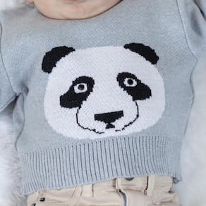 Suéter de bebê em jacquard com estampa de panda e abertura de ombro.