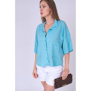 Blusa Viscolinho Mangas Curtas Lea, possui mangas curtas, com gola, decote em V, abertura frontal com botões de pressão e bolsos frontais. A blusa em linha é versátil e super confortável, perfeita para usar em todas as ocasiões do dia a dia, além disso ela é levinha e oferece uma sensação de frescor à pele. Código do produto:1025139002