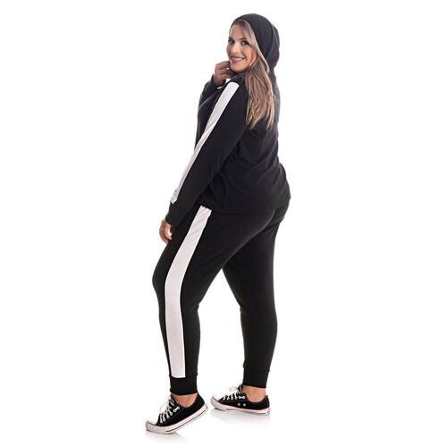 Blusão feminino elaborado em moletinho. Possui boa elasticidade, toque macio, mangas com faixa em cor contrastante, punho seguindo o mesmo tecido da peça e capuz com cordão. Nos dias frios esteja bem vestida e sinta-se confortável. Use-para trabalhar, passear ou ficar em casa. Combine as mais variadas peça com ela ou use como conjunto veja o item: LEP101442.