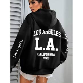 Blusão Moletom Feminino Los Angeles ElaShopp - Preto - G1
