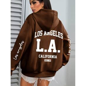 Blusão Moletom Feminino Los Angeles ElaShopp - Marrom - G4