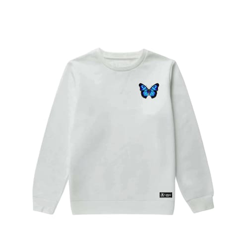Blusão Moletom Infantil Borboleta Personalizado sem Capuz gola Redonda - Branco - 8