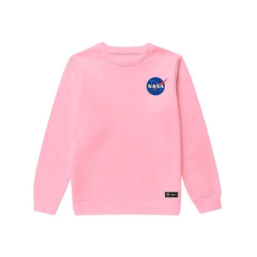 Blusão Moletom Infantil Nasa Personalizado sem Capuz gola Redonda - Rosa - 12