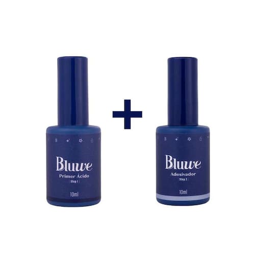O kit comtém:1 - step 1 bluwe 10ml1 - step 2 bluwe 10mlDesenvolvido dentro dos nossos laboratórios, o step 1 primer ácido bluwe desidrata e desengordura a unha natural.Oferece extrema adesão dos produtos em qualquer tipo de lâmina, inclusive em unhas finas e/ou oleosas.Precauções: fórmula com ácido. Manter longe do alcance de crianças e animais. Em caso de contato com pele e/ou olhos, lave imediatamente com água em abundância.O encanto: perfeito para aderência em unhas difíceis.Modo de uso: com o pincel, aplique o primer step 1 sobre a lâmina ungueal, evite contato com a área da cutícula. Espere evaporar por alguns instantes.Indicação de uso: indicado para todos os tipos de unhas.Desenvolvido dentro dos nossos laboratórios, o step 2 adesivador bluwe promove aderência extra dos produtos àUnha natural. Oferece extrema adesão dos produtos em qualquer tipo de lâmina, inclusive em unhas finas e/ou oleosas.O encanto: além dos ingredientes tradicionais de um adesivador, adicionamos na fórmula as mesmas matérias primas do gel. Com isso, temos uma compatibilidade incrível e uma aderência muito duradoura.Precauções: manter longe do alcance de crianças e animais. Em caso de contato com pele e/ou olhos, lave com água em abundância.Modo de uso: com o pincel, aplique o adesivador step 2 somente na lâmina ungueal, evite contato com a área da cutícula. É normal ficar com pegatina, não precisa catalisar.Indicação de uso: indicado para todos os tipos de unhas. Marca: Bluwe