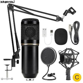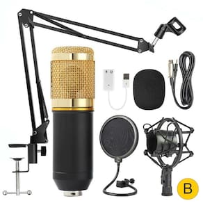 BM800 Condensador Kit de Microfone Estúdio Microfone Saída impedância: 150 ohms + / -30% Interface de saída do microfone: 3,5 mm Ruído do sinal: 78dB XLR comprimento do cabo: 2,5m Resposta de frequência: 20Hz-16kHz Impedância de carga: maior que igual a 1000Ohm Corrente elétrica: 3mA Braçadeira de mesa Máxima. Espessura de montagem: 45mm Sensibilidade: -38dB + / -2dB Ruído equivalente: 16dBA Interface de saída do microfone: 3,5 mm Max. Filtro Pop Gooseneck Comprimento: 370mm 1.Captador sensível: O Zingyou BM-800 possui um grande condensador de tubo de diafragma, que vibra e envia um sinal para a saída quando ativado e atingido por ondas sonoras, fornece uma representação extremamente precisa e altamente detalhada do que está sendo reproduzido.2.Baixo Ruído: Possui uma alta relação sinal-ruído (SNR), o que significa que menos distorção ocorrerá no processo de gravação.3.Perfeito para vocais, instrumentos musicais, podcasting, locuções, entrevistas, gravações de campo. Microfone condensador profissional para canto de estúdio.