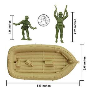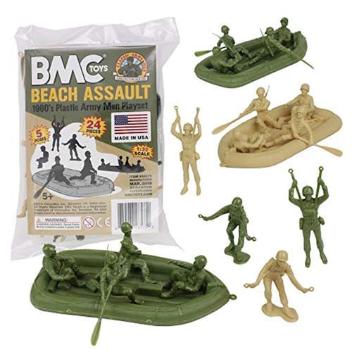 Da CLÁSSICA SÉRIE DE COLECIONADORES DO ARMY MEN, a BMC Toys traz de volta um conjunto icônico de figuras da Era de Ouro dos Playsets Homens do Exército. Este pacote de 24 Olive Drab e Tan WW2 US Soldier PLASTIC ARMY MEN é orgulhosamente fabricado nos Estados Unidos e apresenta 5 figuras e jangadas diferentes. As tropas têm aproximadamente 1:32 de escala, têm até 2,1 polegadas de altura, e são feitas de bronzeado flexível e plástico LDPE de cor verde de oliva com bons detalhes e um pouco piscando. Cada cor inclui 4 fuzileiros sentados, 4 remadores, 2 Landing Craft Rubber Boat (LCR), 2 Paraquedistas em 2 poses, e instruções para facilitar a fazer paraquedas de guardanapos de papel e linha. A balsa mede 5,5 polegadas de comprimento, é oca por baixo, e até flutua na água. Estas figuras foram mente produzidas por volta de 1960 pela Louis Marx & Company e foram incluídas em muitos de seus famosos Battleground e History in the Pacific Playsets. Eles também foram oferecidos em playsets por várias empresas através das décadas de 1980 e 1990, e mais tarde produzidos em plástico duro para o mercado de hobby. Estas são excelentes tropas para uma variedade de configurações desde a 2ª Guerra Mundial até os conflitos da Guerra Fria. Este é um conjunto de verdadeiros heróis de plástico americanos, destinados a serem criados, derrubados, pegos e jogados por muitos anos. PEQUENOS HOMENS DO EXÉRCITO VERDE foram até introduzidos no Hall da Fama do Brinquedo Nacional. Embalado em saco plástico com cartão de inserção e recomendado para maiores de 5 anos.