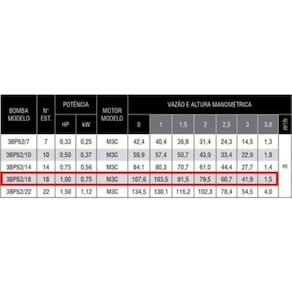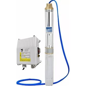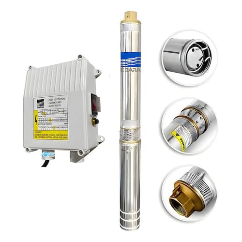 MOTOBOMBA EBARA 1,0 CV 18 ESTÁGIOS 220V COM PAINEL COMANDO EXTERNO 3FIOSCARACTERISTICAS:• VAZÃO MÁXIMA 3,800 LITROS POR HORA• POTÊNCIAS 1.0 HP monofásico• Altura máxima de 107,6 mca• DIÂMETRO 3” (PARA TUBO A PARTIR DE 80 mm)• Com BoxCARACTERÍSTICAS:Bombeador:• Aço inox• Rotores e difusores em tecnopolímero para maior resistência à abrasão• Corpo de aspiração e corpo de válvula em latão• Número de estágios 18• Ph de 6,5 ~ 8,5• Conteúdo de areia máximo permitido de 40 g/m³ ou ppm• Submergência até 70 m• Temperatura até 35 ºCMotor• Aço inox• Refrigerado e lubrificado a óleo (grau alimentício)• Isolação classe B (130°C)• Vedação com selo mecânico e retentorALTURA MANOMETRICA X VAZÃO:- 107 M.C.A x 0 L/H- 103 M.C.A x 1.000 L/H- 91 M.C.A x 1.500 L/H- 79 M.C.A x 2.000 L/H- 60 M.C.A x 2.500 L/H- 42 M.C.A x 3.000 L/H- 1,5 M.C.A x 3.800 L/HAPLICAÇÕES:• Captação de água potável em poçoscom diâmetro de 3”• Abastecimento de residências,chácaras, sítios e indústrias• Irrigação• Rebaixamento do lençol freáticoGarantia 12 meses