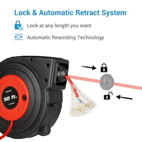 Carretel de cabo de extensão retrátil Dewenwils de 15 m com torneira tripla iluminada e disjuntor de 13 amp, cabo SJTOW de 14 AWG/3 C Feito de capa de polipropileno resistente a impactos e cabo SJTOW de calibre 14, o carretel de cabo de extensão resistente retrátil de 15 metros da Dewenwils é resistente e resistente e pode suportar os abusos de uma garagem ou loja ocupada. Possui um mecanismo inteligente de rebobinamento de guia automático para evitar dobras e emaranhados. O carretel do cabo de alimentação retrai de forma rápida e suave e o sistema de catraca irá travar o cabo a qualquer comprimento ou você pode selecionar um modo sem bloqueio. O cabo SJTOW de calibre 14 pode resistir a óleo, alcalinos, ozônio, ácido, clima frio e oferece flexibilidade, leveza e durabilidade. O suporte de montagem pode girar 180 graus. A fêmea iluminada de três tomadas, o batente de cabo ajustável e o disjuntor embutido com botão de reinicialização tornam este carretel perfeito para quase qualquer configuração de oficina. Suporte de montagem giratório Uma vez que o cabo é instalado na parede ou no teto, o suporte de montagem giratório permitirá uma rotação flexível dentro de 180 graus após o movimento do cabo. O carretel de cabo vai girar em sua direção enquanto você trabalha. Disjuntor 13A com botão de reinicialização O disjuntor embutido de 13 A dá tranquilidade sabendo que você não vai tropeçar disjuntores ou soprar fusíveis. Ele protege dispositivos contra curto-circuito e sobrecargas, que cortam automaticamente a fonte de alimentação quando a corrente total dos dispositivos conectados exceder 13 A. Tudo o que você precisa fazer é simplesmente redefinir o circuito no carretel. Tomada tripla iluminada A tomada tripla oferece muito espaço para fornecer energia a todo o seu projeto sem nunca ter que desconectar, e você vai descobrir facilmente a energia antes de ligar vendo o conector de toque triplo iluminado. - ? Cabo de calibre 14 AWG/3C de 15 pés? Classificação para 13 A/125 V/1625 W, a estação de alimentação de carretel de cabo elétrico resistente tem uma capacidade de saída tripla com uma luz indicadora, conveniente para áreas difíceis de ver; cabo de extensão de 15 m e cabo de 1,4 m de entrada - ? Cabo SJTOW resistente a óleo e água ? O tipo especial de PVC (SJTOW) é livre de emaranhados e resistente à luz UV, ozônio, água, óleo e ácido que você pode encontrar em uma garagem típica; também resistente ao clima e mantém flexível em baixas temperaturas; apenas para uso interno ou seco - ? Retrátil Automático ? Com um mecanismo inteligente de rebobinamento de guia automático para evitar dobras e emaranhados, o carretel do cabo de alimentação se retrai de forma rápida e suave; o sistema de catraca travará o cabo em qualquer comprimento; o carretel do cabo também vem com uma rolha ajustável - ?Suporte giratório para montagem na parede/teto? O suporte de montagem giratório de 180 graus permite que você puxe e solte facilmente o cabo de várias direções; o carretel de cabo retrátil pode ser montado na parede ou teto facilmente com um suporte separado - ?Disjuntor de 13 A embutido? O disjuntor integrado de 13 A protege os dispositivos contra curto-circuito e sobrecargas, que cortam automaticamente a fonte de alimentação quando a corrente total dos dispositivos conectados exceder 13 A; pressione o botão de reinicialização para continuar usando após o corte; certificado pela UL