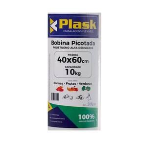 Bobina Picotada Fundo Reto 40x60 Informações:Ideal para supermercados, açougues, hortifrútis, casa de rações, entre outros.Medida: 4060 cmCapacidade: 10 KgTipo de Solda: FundoPeso por Bobina: 2,3 KgMaterial: pead - Polietileno de Alta Densidade Marca: Plask