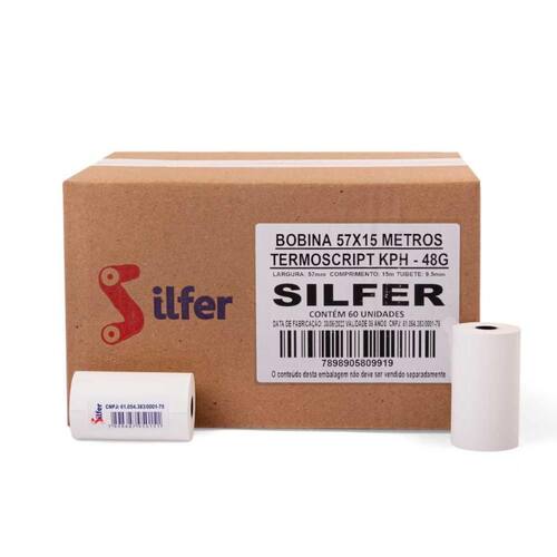 A Bobina Termica 57mm x 15m Branca KPH48 Silfer é uma bobina de papel térmico utilizada em equipamentos que imprimem recibos e comprovantes por calor sem uso de tinta.