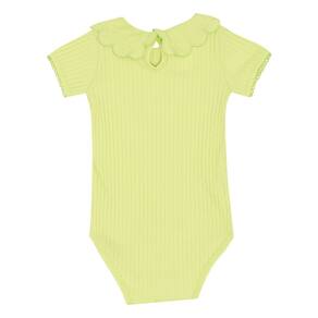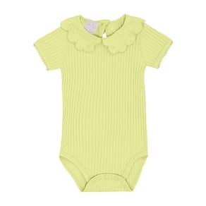 Body manga curta confeccionado em malha canelada na cor lima, a malha tendência para as meninas também chegou para as babys fashionistas com detalhe de babado na gola, possuí abertura de botões entre as pernas e para facilitar a vestimenta também possuí abertura nas costas com botão. Sua fashionista vai encantar a todos no dia a dia!