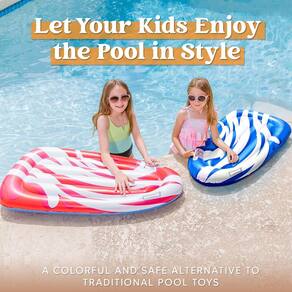 - SUPERVALOR. Nosso flutuador de piscina inflável vem em 2 peças de pranchas nas cores azul e vermelho para crianças que aprendem na piscina e brincam na água. Perfeito para festas de verão na piscina e na praia.