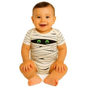 Body de Bebê Manga Curta Temático Fantasia Múmia.