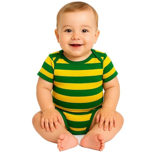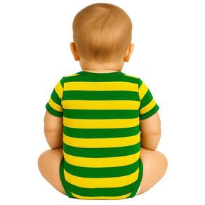 Body de Bebê Manga Curta Torcedor Brasil Listrado Verde Amarelo.