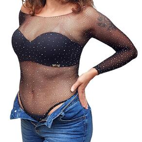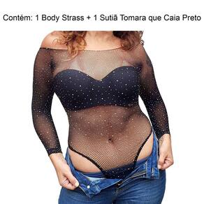 Body Manga Longa Arrastão com Strass + Sutiã Tomara Caia Preto Alça Removível. Body na cor Preto em tamanho único que atende do tamanho P/38 ao G/44 pois possui bastante elasticidade. Modela e contorna muito bem o corpo proporcionando sensualidade e conforto. Possui strass em toda a peça, modelo cavado, manga longa. O decote permite que se utilize normalmente no encaixe dos ombros ou mais baixo deixando os ombros à mostra. É uma peça bem versátil que pode ser utilizada em diversas ocasiões combinando com tops, blazer ou mesmo com outra blusa fio 40 ou 60, suavizando a transparência. Sutiã Tomara que caia reforçado com alça removível: Permite abusar dos decotes deixando costas e ombros livres criando um visual elegante. Possui bojo, promovendo maior sustentação e volume aos seios, valorizando ainda mais a região do busto. Não deixa marcas na roupa e valoriza a silhueta, trazendo conforto e versatilidade. Possui 2 alças removíveis, permitindo variedade na utilização, Bojo Casca proporcionando um formato arredondado aos seios, contém aro e bojo sem enchimento, fecho duplo com 2 posições de ajuste e 3 colchetes. Tecido leve e macio, é confeccionado em Microfibra de Poliamida, proporcionando alta qualidade e conforto. Tecido duplo com acabamento de costura invisível garante um visual sofisticado. Laterais reforçadas com barbatanas. Tamanhos do sutiã: P/38 - M/40 - G/42 - GG/44. Selecione o tamanho ideal no campo variação. Composição: 90% Poliamida, 10% Elastano - Bojo 60% Poliuretano, 40% Poliéster. Atenção: Produto de alta rotatividade. Recebemos novas remessas semanalmente e algum detalhe pode variar conforme lote recebido, porém o produto é o mesmo e mantém as mesmas características e qualidade. Contém: 1 Body Arrastão Manga Longa em tamanho único + 1 Sutiã Tomara que Caia no tamanho selecionado. Cuidados: Lavar à mão, utilizar sabão neutro, secar à sombra, armazenar delicadamente em local apropriado. Fotos ilustrativas e reais do produto. Marca: YanFei