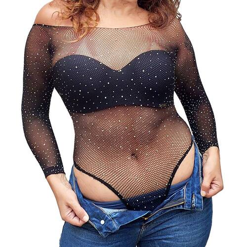 Body Manga Longa Arrastão com Strass + Sutiã Tomara Caia Preto Alça Removível. Body na cor Preto em tamanho único que atende do tamanho P/38 ao G/44 pois possui bastante elasticidade. Modela e contorna muito bem o corpo proporcionando sensualidade e conforto. Possui strass em toda a peça, modelo cavado, manga longa. O decote permite que se utilize normalmente no encaixe dos ombros ou mais baixo deixando os ombros à mostra. É uma peça bem versátil que pode ser utilizada em diversas ocasiões combinando com tops, blazer ou mesmo com outra blusa fio 40 ou 60, suavizando a transparência. Sutiã Tomara que caia reforçado com alça removível: Permite abusar dos decotes deixando costas e ombros livres criando um visual elegante. Possui bojo, promovendo maior sustentação e volume aos seios, valorizando ainda mais a região do busto. Não deixa marcas na roupa e valoriza a silhueta, trazendo conforto e versatilidade. Possui 2 alças removíveis, permitindo variedade na utilização, Bojo Casca proporcionando um formato arredondado aos seios, contém aro e bojo sem enchimento, fecho duplo com 2 posições de ajuste e 3 colchetes. Tecido leve e macio, é confeccionado em Microfibra de Poliamida, proporcionando alta qualidade e conforto. Tecido duplo com acabamento de costura invisível garante um visual sofisticado. Laterais reforçadas com barbatanas. Tamanhos do sutiã: P/38 - M/40 - G/42 - GG/44. Selecione o tamanho ideal no campo variação. Composição: 90% Poliamida, 10% Elastano - Bojo 60% Poliuretano, 40% Poliéster. Atenção: Produto de alta rotatividade. Recebemos novas remessas semanalmente e algum detalhe pode variar conforme lote recebido, porém o produto é o mesmo e mantém as mesmas características e qualidade. Contém: 1 Body Arrastão Manga Longa em tamanho único + 1 Sutiã Tomara que Caia no tamanho selecionado. Cuidados: Lavar à mão, utilizar sabão neutro, secar à sombra, armazenar delicadamente em local apropriado. Fotos ilustrativas e reais do produto. Marca: YanFei