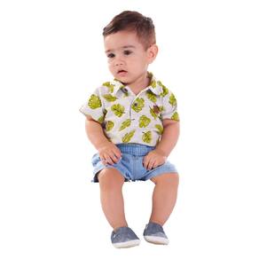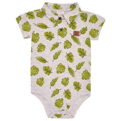Ah! O frescor da primavera chegou! Confeccionado em tecido meia malha, este body na cor mescla banana conta com uma estampa de folhas tropicais, possui também um aplique de termocolante com identificação Pulla Bulla e botões na gola. Para facilitar o dia a dia das mamães esta peça possuí abotoamento entre as pernas. Um verdadeiro charme para se manter fresquinho nos dias quentes!