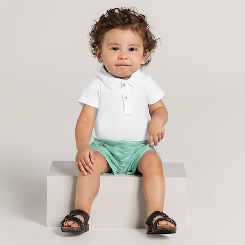 Esse body polo é o toque perfeito de estilo e conforto para bebês meninos. Sua malha com cor lisa proporciona versatilidade e conforto, enquanto as mangas curtas o tornam ideal para a estação, a gola polo com fechamento por botões adiciona um toque de sofisticação e o fechamento entrepernas por botões de pressão gera praticidade. Ideal para facilitar o dia a dia enquanto deixa o pequeno super charmoso e fofo.