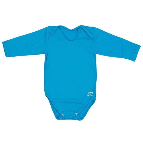 O Body de Praia Bebê Everly possui Proteção Solar FPU 50+ e mangas longas para maior proteção. A abertura entre as pernas e a gola facilitam a troca e o vestir.