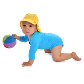 O Body de Praia Bebê Everly possui Proteção Solar FPU 50+ e mangas longas para maior proteção. A abertura entre as pernas e a gola facilitam a troca e o vestir.