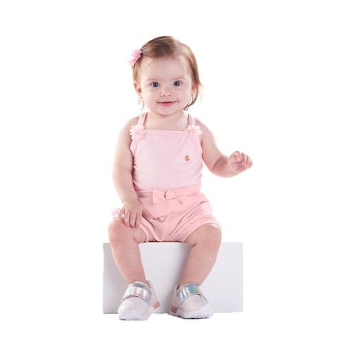 A mamãe vai adorar vestir sua fofurinha com nosso body regata na cor rosê, super versátil e fresquinha para todas as ocasiões. Confeccionado em cotton leve na cor rosê, o detalhe do aplique flor na parte frontal do body da um charme na peça. O dia da sua pequena vai se tornar mais divertido e fresquinho.