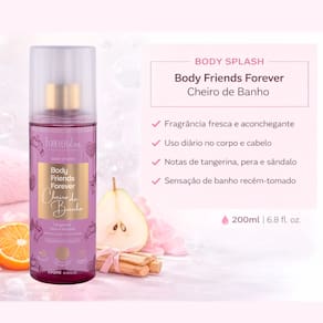 O Body Splash Cheiro de Banho entrega frescor, leveza e um perfume confortável que envolve a pele e os cabelos de forma suave e irresistível. Sua fragrância combina tangerina, pera e sândalo, criando um aroma limpo, delicado e ao mesmo tempo marcante, perfeito para quem ama cheirinho de cuidado e bem-estar.
