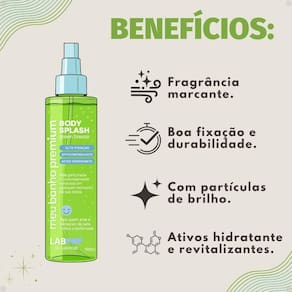 Descubra o Body Splash LabPop by Labotrat Meu Banho Premium Green Breeze 190ml, a escolha perfeita para quem busca uma explosão de frescor e energia em sua rotina diária. Este Body Splash Labotrat proporciona um toque leve e envolvente de fragrância, ideal para revitalizar sua pele a qualquer momento. Com uma combinação harmoniosa de notas verdes e cítricas, ele oferece uma sensação imediata de leveza e bem-estar, transformando seu dia.